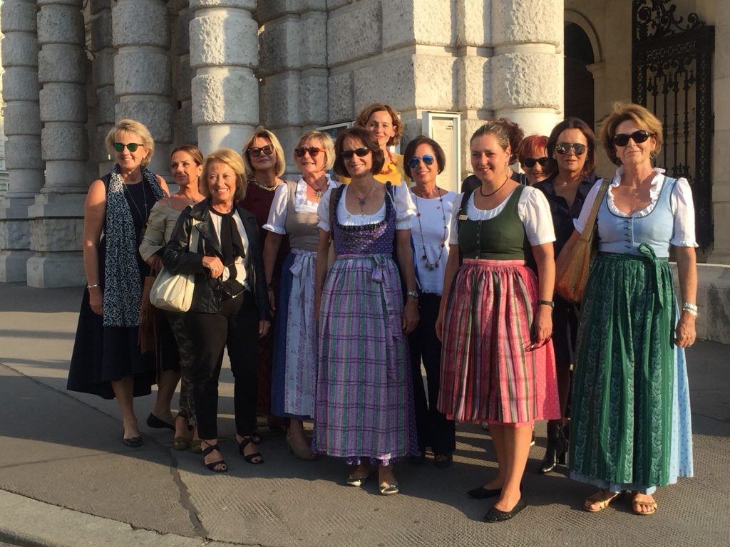 unserer Gäste war sehr groß und so boten wir ihnen einen Besuch im Schloß Belvedere, Führungen im Stephansdom, durch die Altstadt, Musikverein, Hofburg, über den Ring….. und mit der Donauinsel und der UNO zeigten wir ihnen das „neue“ Wien. Selbstverständlich haben wir ihnen auch die kulinarischen Genüsse unserer Stadt nicht vorenthalten: Bei dem Besuch eines idyllischen Heurigen in den Weingärten von Neustift kam gleich gute Stimmung auf. Am zweiten Abend ging es bei einem Galadiner sehr feierlich zu.