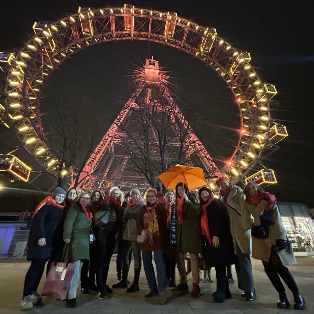 Auch in diesem Jahr wurde, dank der Verbindung unserer CS Susanna Kleindienst, das Riesenrad orange beleuchtet. Ein sehr eindrucksvolles Bild, dass Wiener Wahrzeichen farbig angestrahlt zu sehen. Wenn dieses nahezu 65 m hohe, mächtige Bauwerk, das seit 1897 im Prater steht, als Mahnmal für Gewalt gegen Frauen eingesetzt wird, ist das ein beachtenswertes Zeichen.